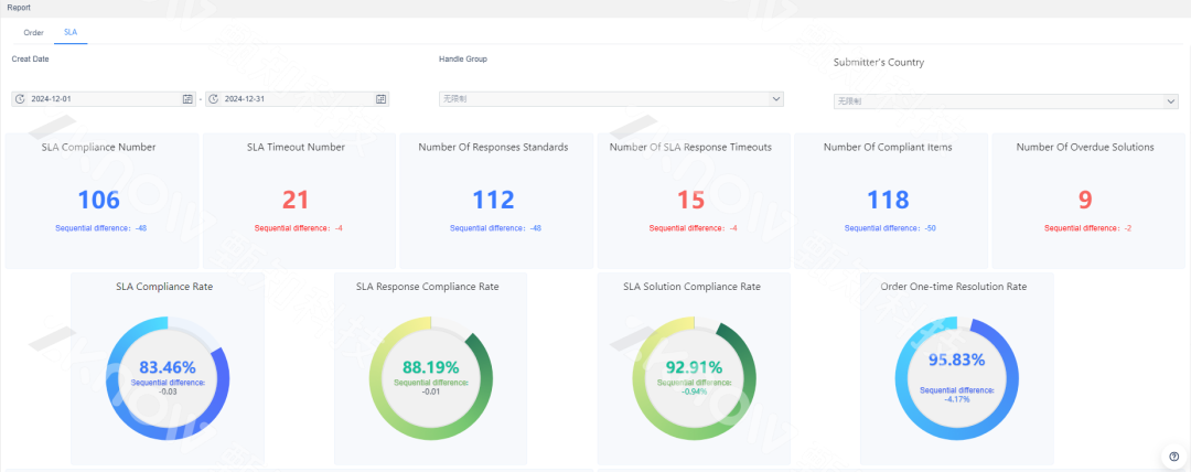报表中心通过对平台中的所有运维数据的深入分析,为企业提供有价值的决策支持。它可以对运维工单的数量、类型、处理时间、处理人员等多方面数据进行统计和分析。通过对这些数据的分析,帮助企业管理者了解运维工作的整体情况,发现运维工作中的可能存在的人力不足,人力过剩,过程资产沉淀等的问题,例如哪些地区的运维问题较多、哪些类型的问题处理时间较长等。基于这些分析结果,企业可以有针对性地调整运维策略,合理分配资源,优化运维流程,从而提高运维工作的整体效率和质量。