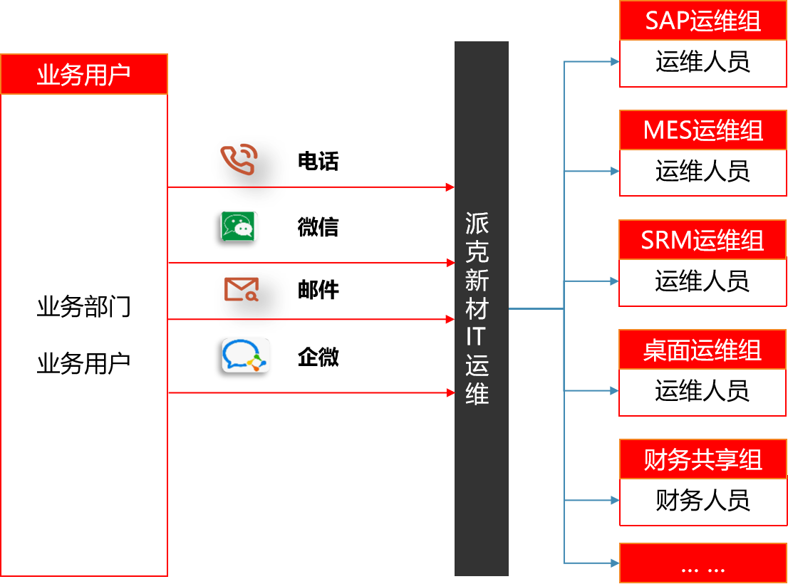 运维团队:不知道对应处理人是谁,需要靠人工协调;常遇重复问题,无自动应答机制;被分散咨询打断,难以集中处理任务。