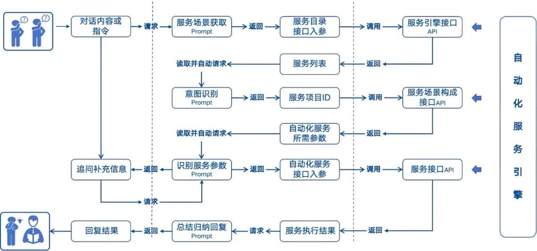 自助服务:对于用户的服务诉求,终端Agent在服务授权范围内可以直接调用自动化工具,直接为用户完成服务处理。