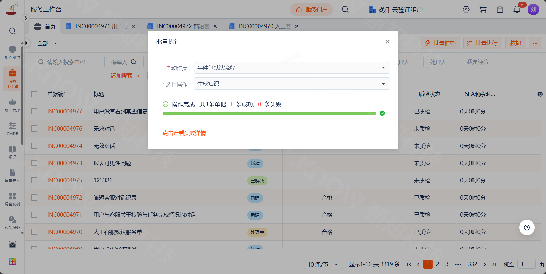 工单全流程管理:结合燕千云的自动化能力,实现工单响应速度提升300%,并形成知识反哺机制。